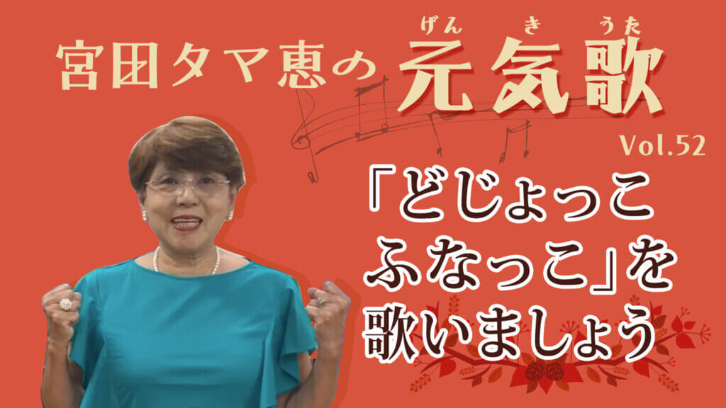 「どじょっこふなっこ」を歌いましょう 宮田タマ恵の元気歌 vol. 52 2025年2月9日 公開 カテゴリー:『元気歌』動画 2部合唱になっている童謡です。下のパートも頑張って歌ってみましょう! 曲の譜面は、『懐かしの あの歌・この歌 元気歌 冬編』に掲載されています。